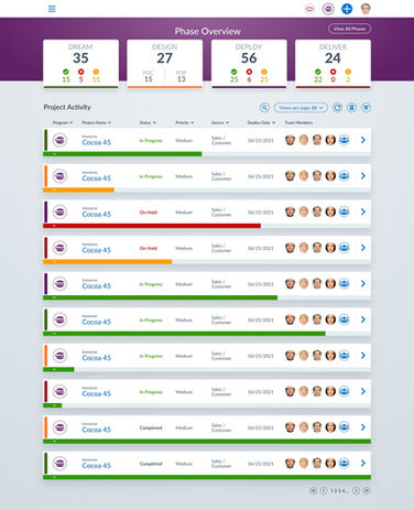 Quick data hits for each phase - how many projects per phase, and with one click, how many per sub-phase