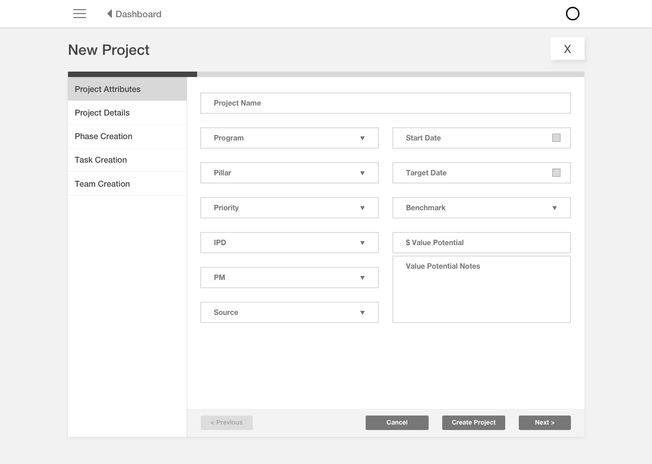 In the case of the 4D project, I was brought on board to help the Flavor R&D team create a custom project tracking system. When I joined the IFF IT department as a contractor, the entire project was 6 months behind schedule, and the business had lost faith in the abilities of the IT department to develop a usable interface. They had started the process correctly; they began by speaking with the appropriate business leaders, end-users (in this case, 4 program managers along with their supervisor), and reviewing the pros and cons of off-the-shelf products. They even went so far as to have a design sprint. All of this happened in January 2019, and by the time I arrived in June, the project had almost come to a complete halt.